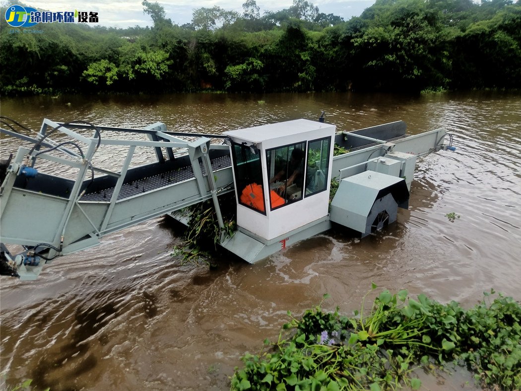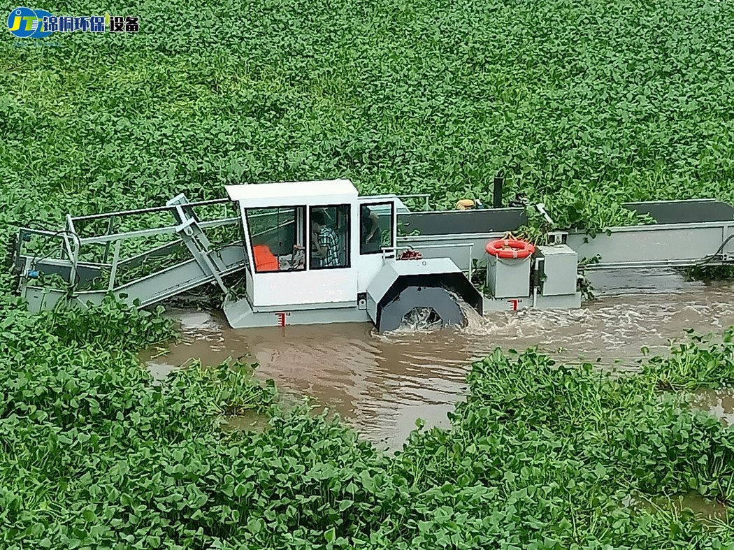 以前都是人工收割打撈各種水草,效率低人們也很累,有什么辦法可以省時省力解決水草瘋長的問題呢?沒錯,用割草船。