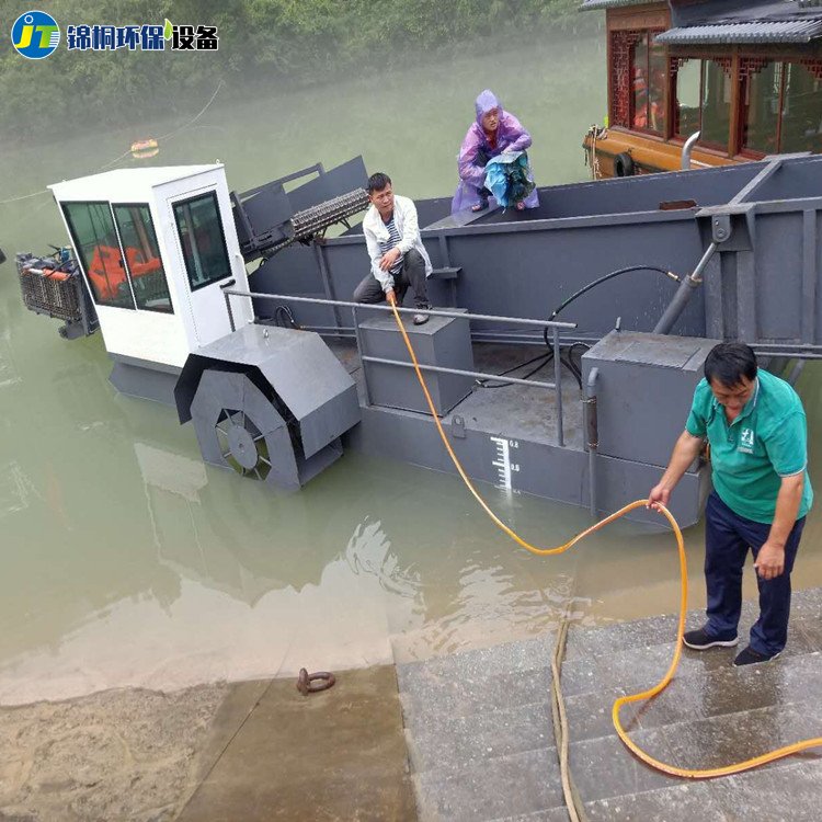 割草船可以對河流、主要運河、湖泊、水庫、人工水域中的風景點的水生植物進行切割和破碎作業,打撈垃圾,清理水面,收集水葫蘆和收獲蘆葦。該設備有全自動,也有半自動的,是集收獲、運輸和自動卸草于一體的多功能設備。