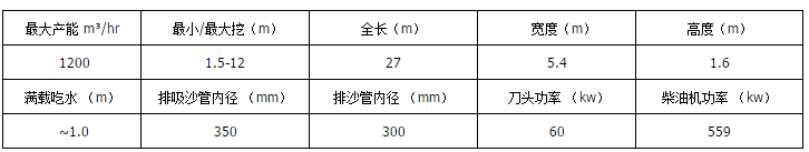 船長27m,挖深可達12米,產能達1200m³/hr,效率高,可靠性強,產量大,能夠將挖掘、輸送、排出和處理泥漿等疏浚工序一次完成,并能夠連續作業。