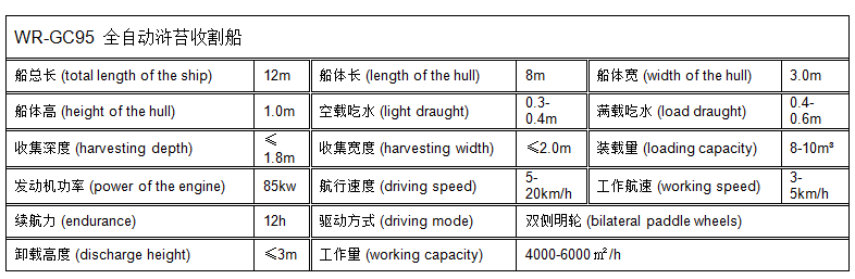 3、該船安裝收割底部橫刀一副,左右兩側立刀(輪)各一副,機械收集輪一套,既能收割水草也能清理水面漂浮物。